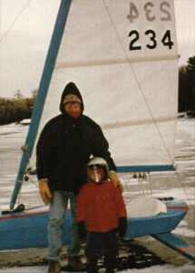 Down the banks of Pilot Knob, just south of the southern tip of Long Island we danced Peer Gynt, the iceboat , between pressure cracks and bewildered fisherman’s tip ups. One frigid Adirondack February we registered 72 miles an hour in Peer Gynt, splinters of ice from the front blade deflecting off our helmet visors. To my horror he removed his hands from the undermount wheel in the cockpit as we careened towards the teeth of a large ridge of ice. At the last second, with my dad’s hands still in the air, the iceboat magically banked to the right, lifting a blade from the ice and narrowly avoiding disaster. As it turns out, you could steer the front blade with your feet- a fact I didn’t know since my legs weren’t yet long enough to reach the pedals. Thrilling adventure. In the thick of fast, chaotic moments on my mountain bike or skis- I remember his intense focus,  the way his nose dripped in the cold and how he set his jaw and bit his tongue and I give thanks to the piece of my soul that understands the delicate balance between danger, joy, and adventure. Another gift from my father.